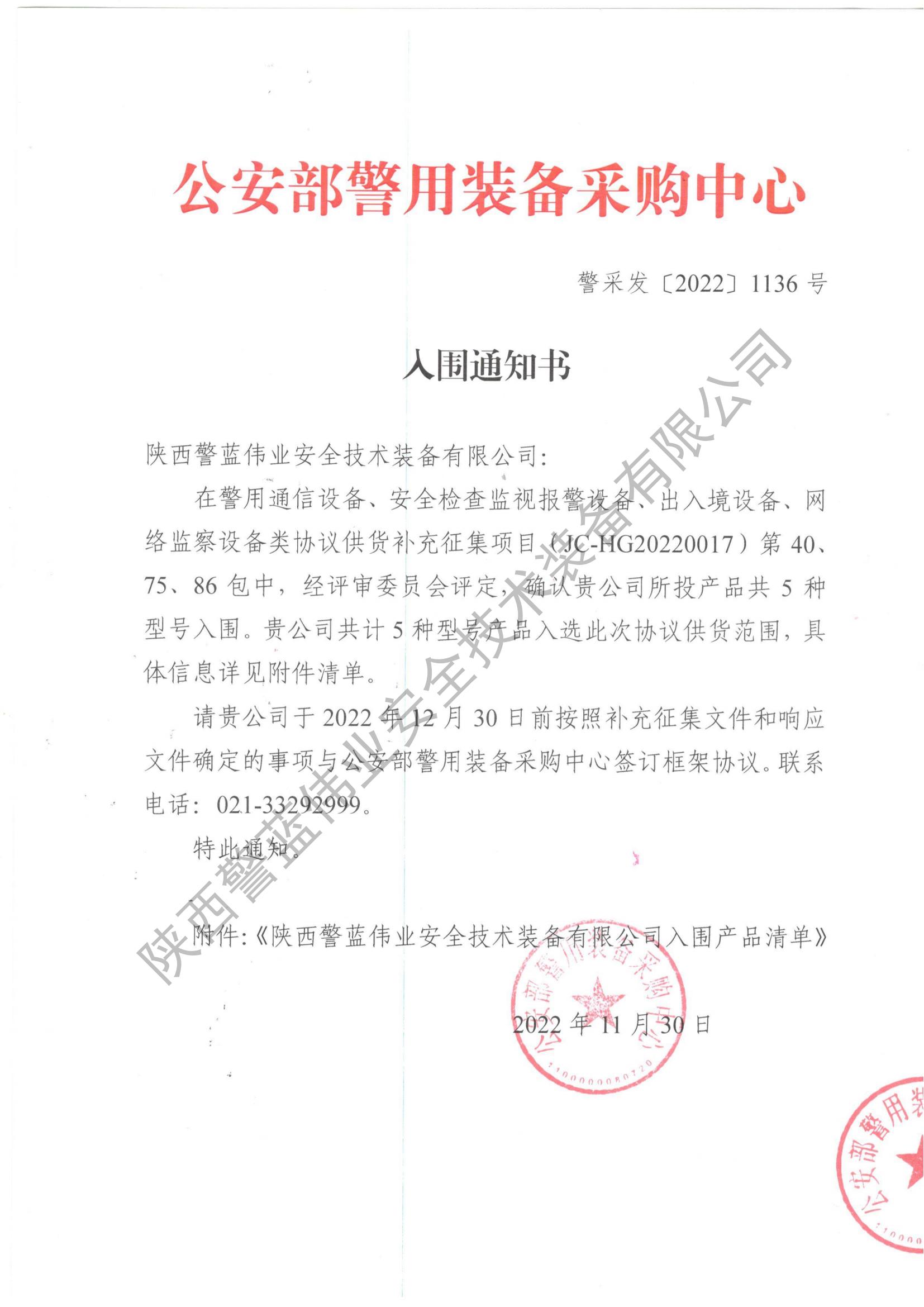 公安部警用裝備采購中心警用通信設(shè)備、安全檢查監(jiān)視報(bào)警設(shè)備、出入境設(shè)備、網(wǎng)絡(luò)監(jiān)察設(shè)備類協(xié)議供貨項(xiàng)目,11月30日公布結(jié)果。陜西警藍(lán)偉業(yè)安全技術(shù)裝備有限公司研發(fā)的氣體酒精含量檢測(cè)儀、單警執(zhí)法記錄儀、4G執(zhí)法記錄儀、5G執(zhí)法記錄儀等5款裝備成功入圍?。?/span>