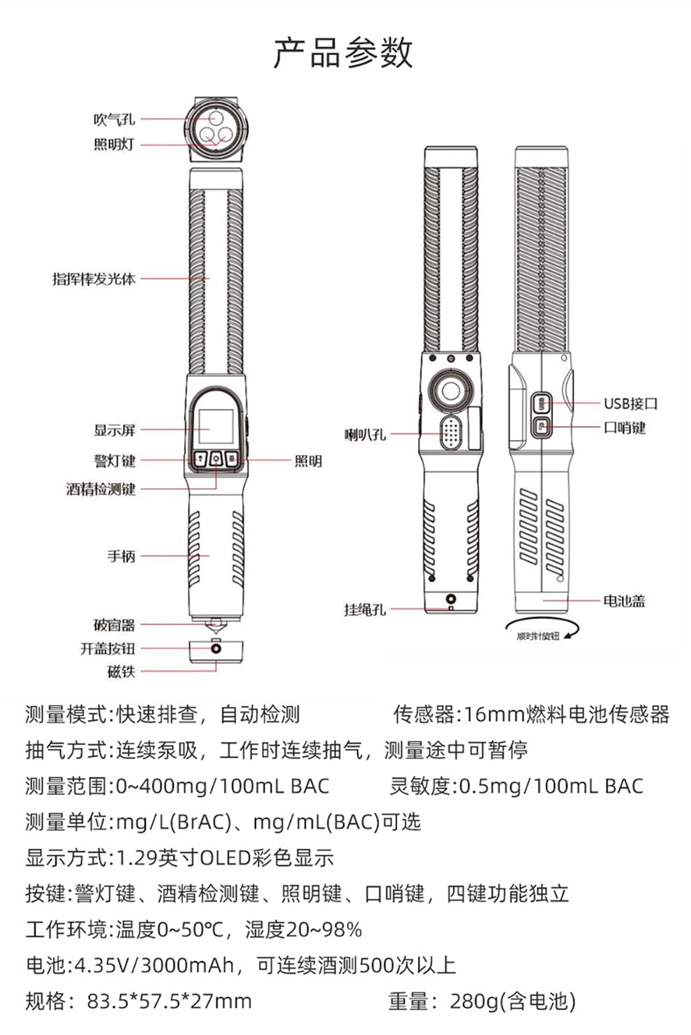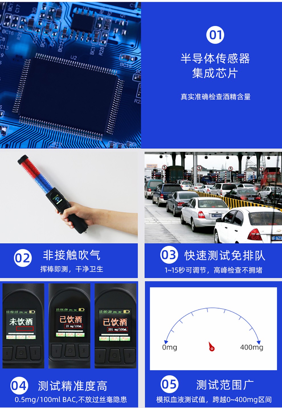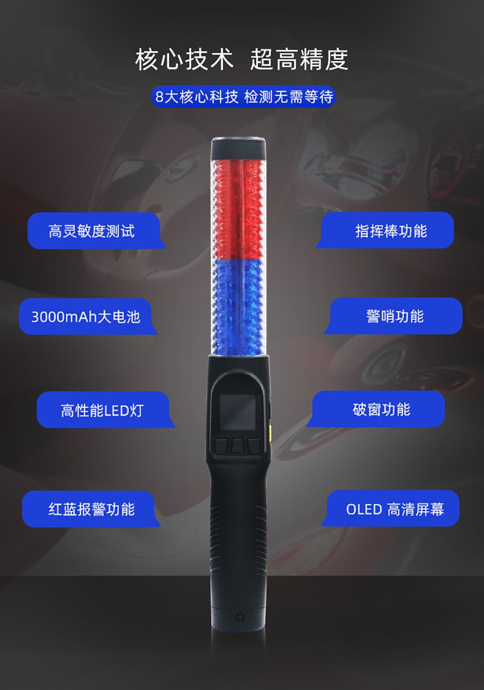 JL-001酒精測試儀,是專為道路交通執(zhí)法研發(fā)的警用裝備,集酒精測試、交通指揮、照明、聲光報警等多功能為一體,具備檢測迅速、精準(zhǔn),操作簡單及輕巧便攜等特點。