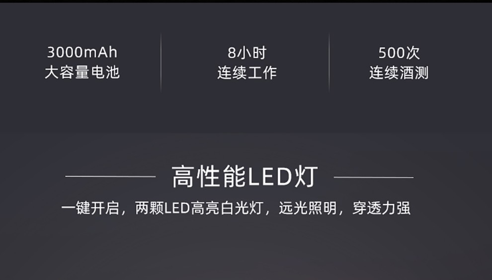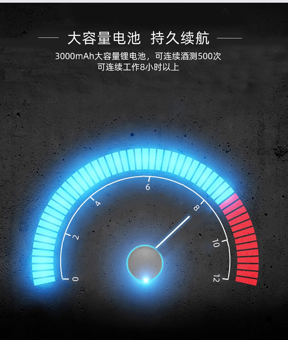 電池 4.35V/3000mAh,可連續(xù)酒測500次以上