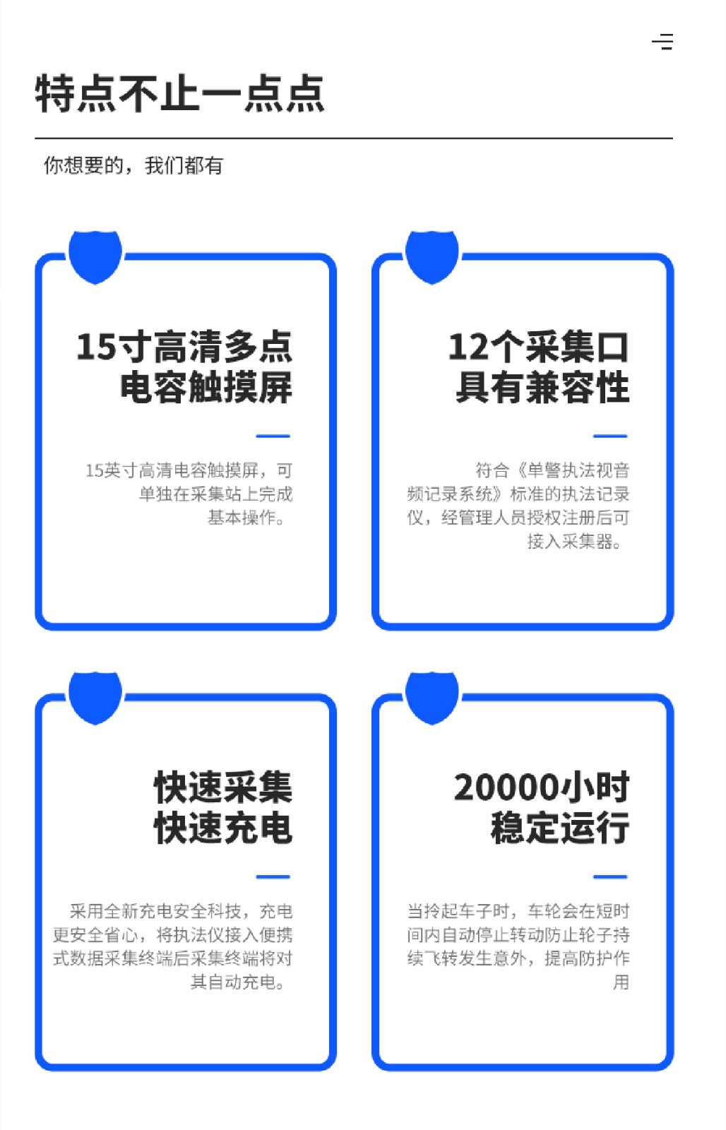 兼容性 符合公安部《單警執(zhí)法視音頻記錄系統(tǒng)》標(biāo)準(zhǔn)的執(zhí)法記錄儀,經(jīng)管理人員授權(quán)注冊后可接入采集器
