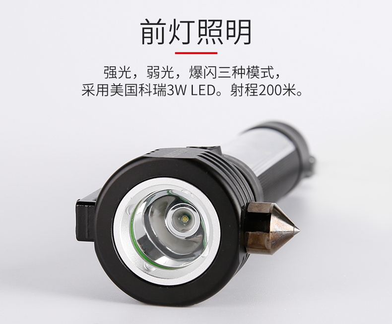 4.頭部左邊配有高硬度合金安全錘,可以輕松擊碎玻;