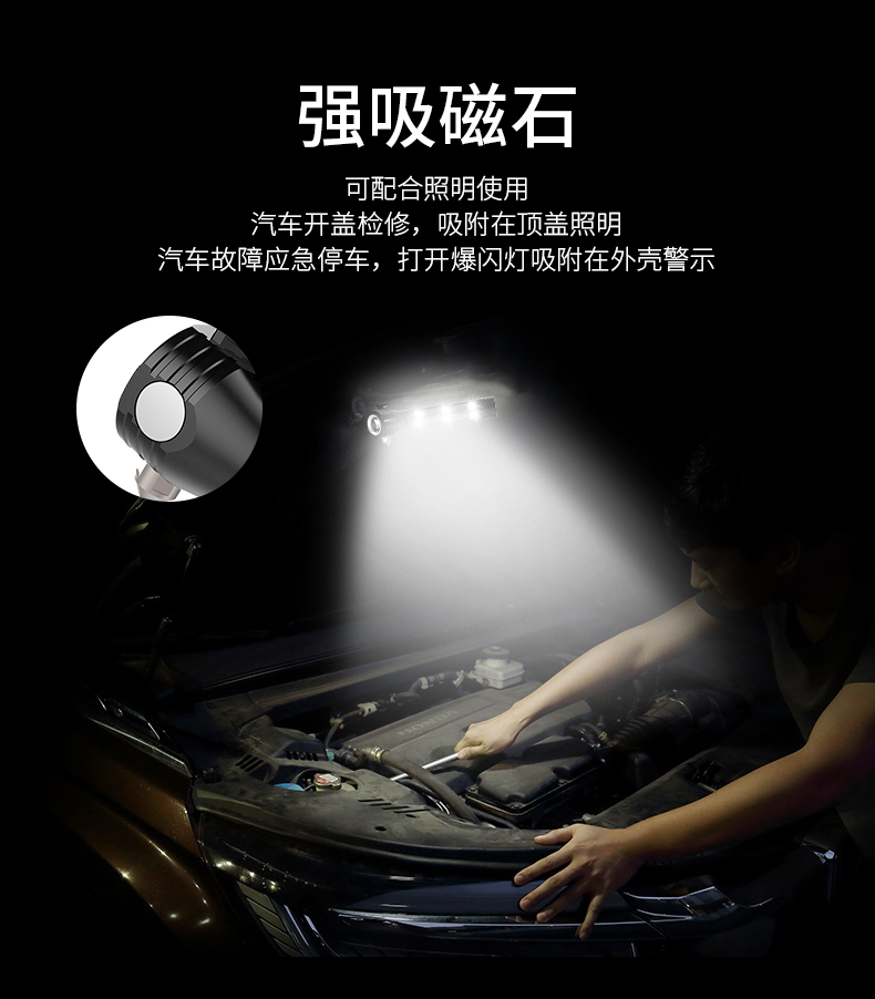 6.同時頭部背部配有強磁,可以輕松吸附在汽車外殼或者鐵件上,方便使用;