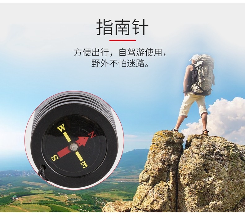 9.尾部有指南針,方便戶外使用(指南針為磁體感應物,不能靠近鋼鐵件);