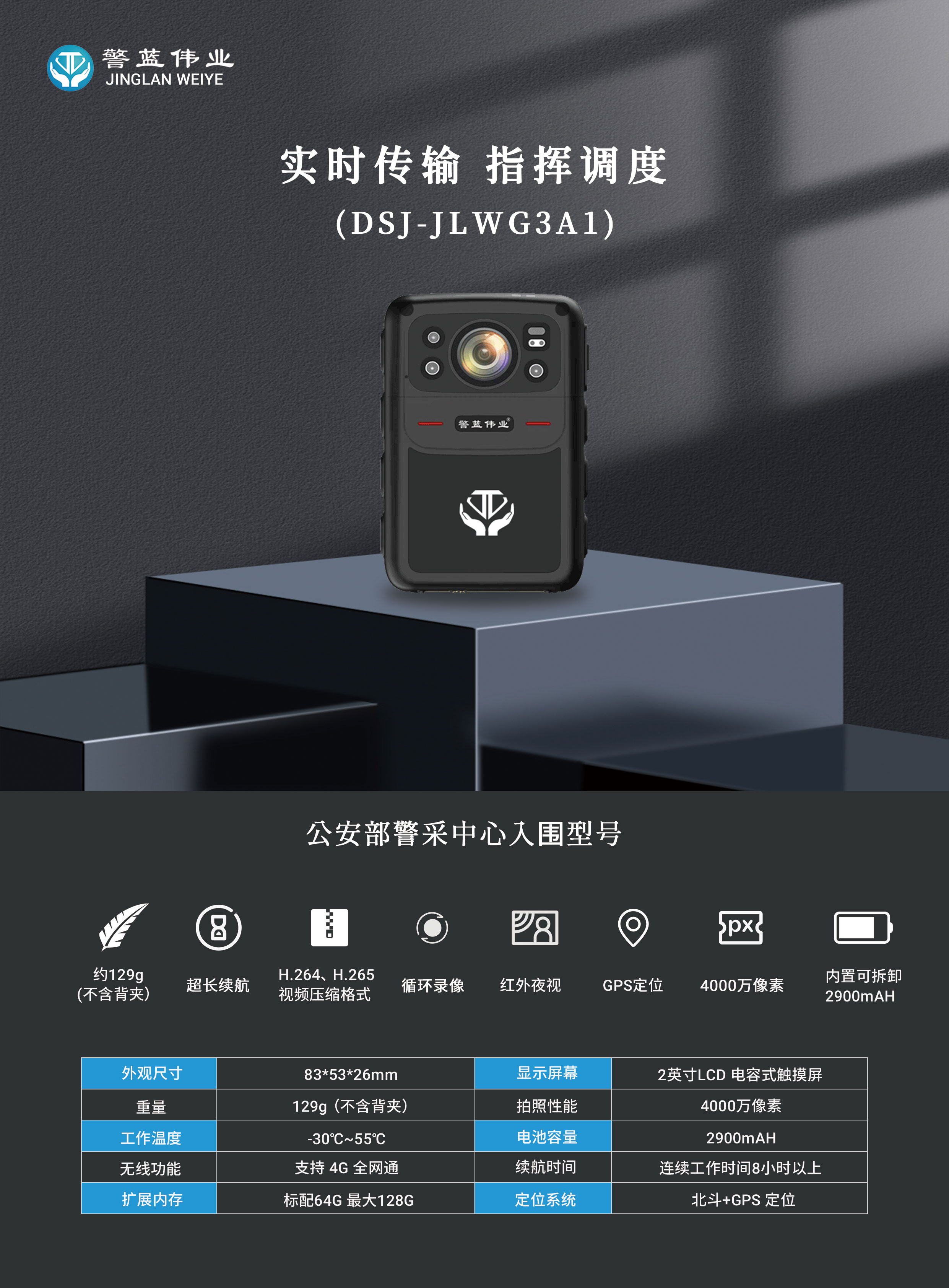 公安部警用裝備采購中心警用通信設備、安全檢查監視報警設備、出入境設備、網絡監察設備類協議供貨項目,11月30日公布結果。陜西警藍偉業安全技術裝備有限公司研發的氣體酒精含量檢測儀、單警執法記錄儀、4G執法記錄儀、5G執法記錄儀等5款裝備成功入圍?。?/span>
