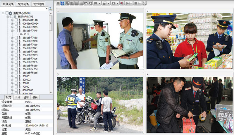 監控客戶端軟件可同時監視多路前端單兵終端圖像功能。可以設置4分屏、6分屏、9分屏和16分屏