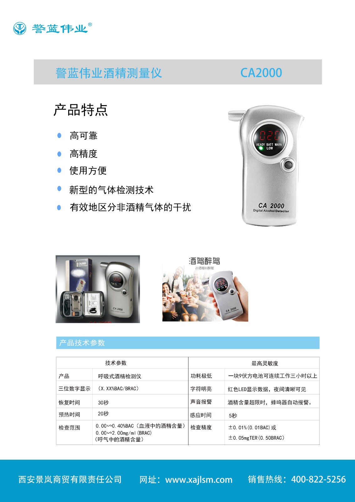 CA2000酒精檢測儀是一款呼吸式酒精檢測儀,嘴含吹管,把氣吹入管中即可,衛生、干凈,具有高可靠、高精度、使用方便等特點,它采用了新型的氣體檢測技術可以準確探測氣體的酒精含量,LED數字顯示使得檢測直觀、有效。獨特的探頭可有效地區分煙味、可樂、咖啡等非酒精氣體的干擾。是便攜應用的理想產品。