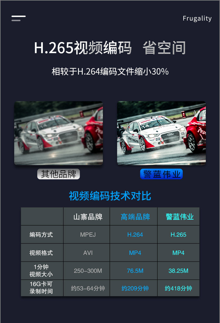 選用H.265視頻編碼 功耗低 節省存儲大空間。