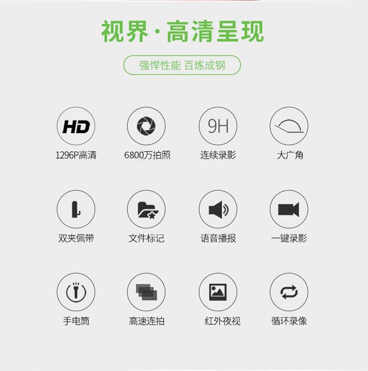 v 專業攝像,視音頻同時攝錄,并有一鍵開機攝像功能,最高分辨率可達1296P,多種分辨率可選;