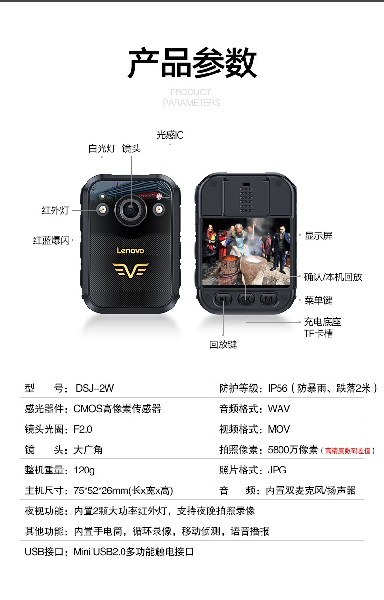 DSJ-2W 聯想音視現場執法記錄儀