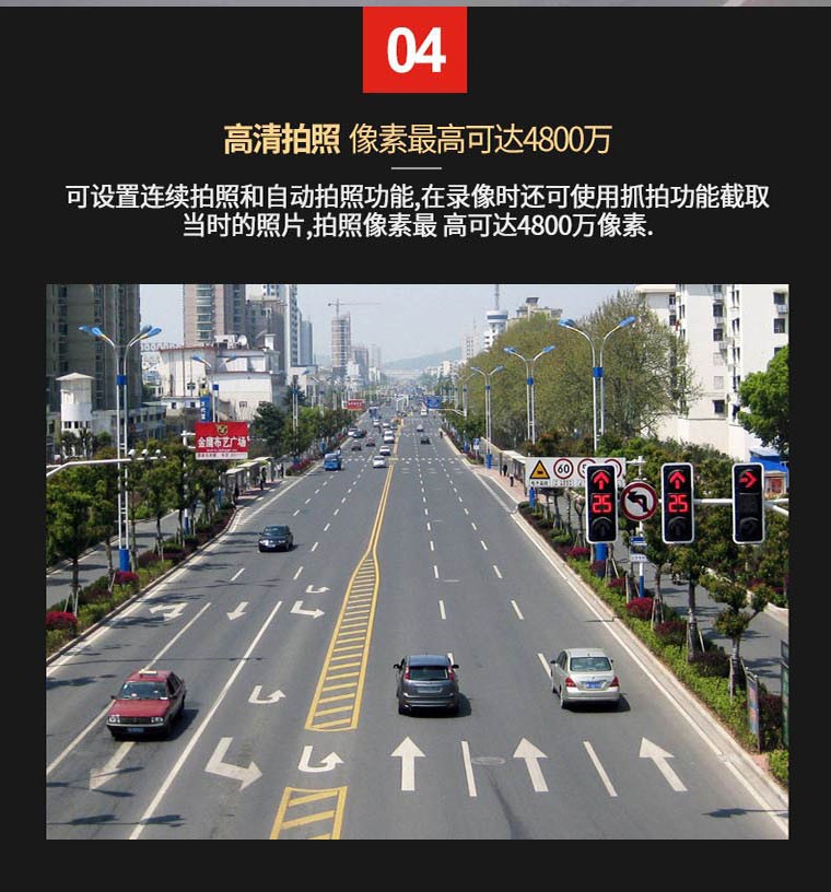 v 高清拍照,可設置連續拍照和自動拍照功能,在錄像時還可使用抓拍功能截取當時的照片,拍照像素最 高可達4800萬像素;
