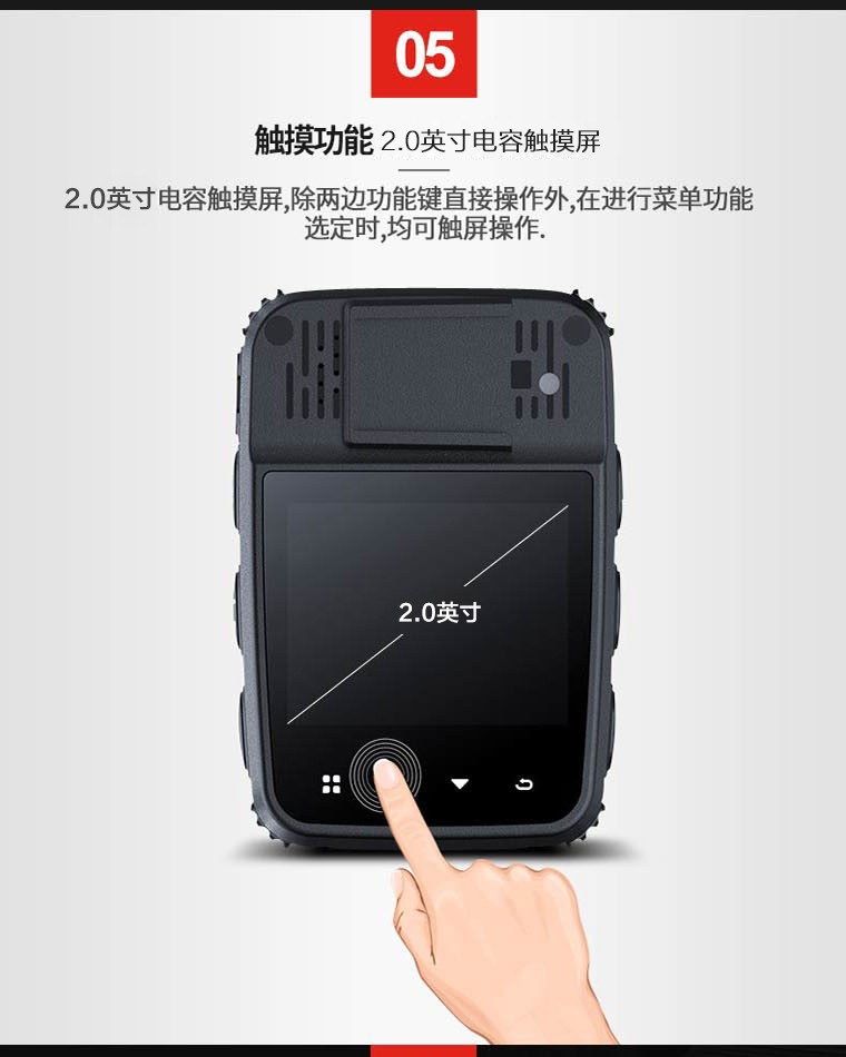 v 觸摸功能,2.0寸電容觸摸屏,除兩邊功能鍵直接操作外,在進行菜單功能選定時,均可觸屏操作;