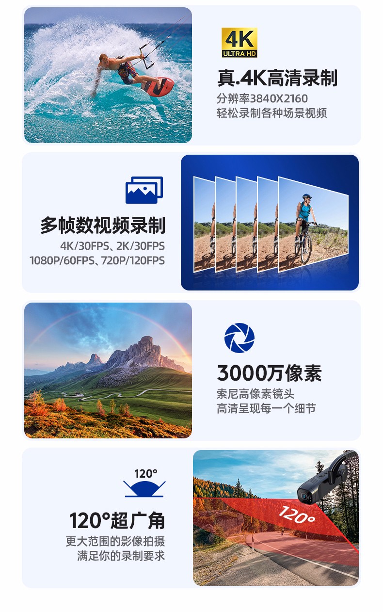 7. 視頻分辨率:3840×2160-4k@30fps;2560×1440-2k@30fps;