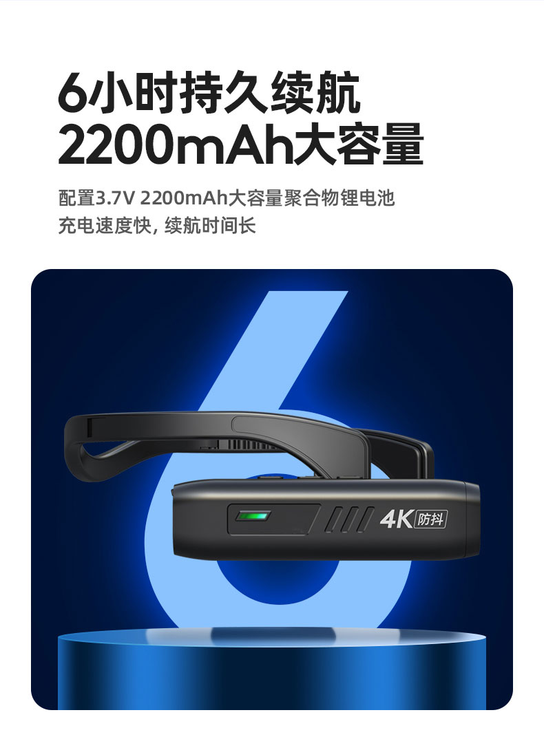 13.續航時間:開WiFi連續攝像5-6小時左右。不開WiFi連續攝像6-7小時左右。