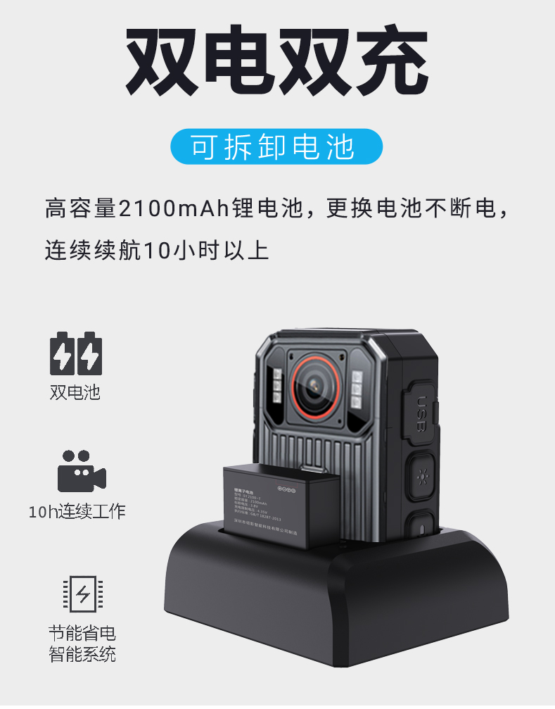 續航時間 可拆卸雙電池設計,電池2100mA/塊,更換電池不斷電,連續續航10小時以上